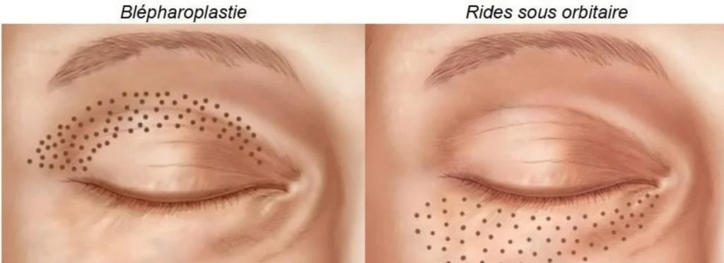 - Blépharoplastie médicale : traitement médical du relâchement des paupières supérieurs et inférieurs