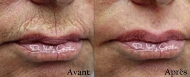 - Atténuation des rides de la lèvre blanche supérieure (rides du code barre) et des rides péribuccales